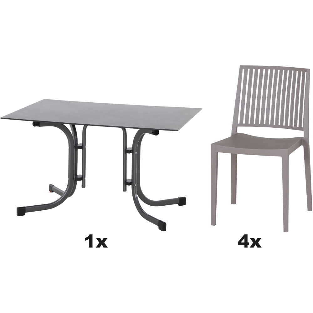 SIENA GARDEN Urban Lights Set 5teilig Lane Stuhl gastrotauglich taupe mit Tisch Sola 120x80