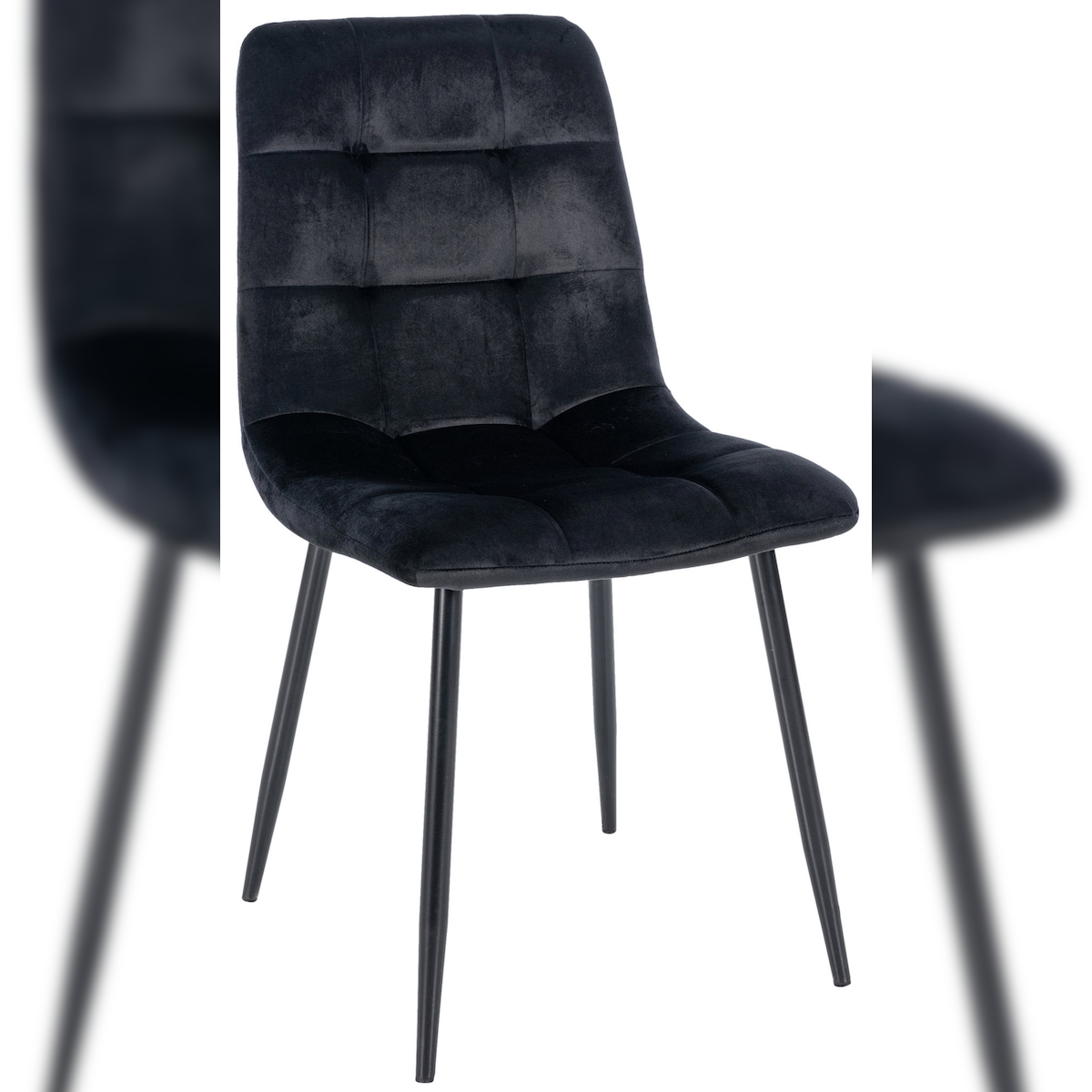 DELUKE® Esszimmerstuhl VOUL - Schwarz, Samt Gesteppter Polsterstuhl Küchenstuhl mit Bodenschonern Esszimmerstühle Stuhl Küche