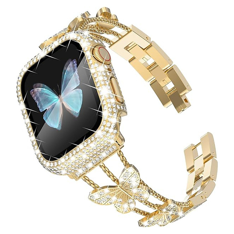 Jewelry Bracelet Compatible with Apple Watch band 38mm 40mm 41mm 42mm 44mm 45mm 49mm Women Glitter Bling Diamond Stainless Steel Strap Replacement Wristband for iwatch Ultra 3 2 Series 11 10 9 8 7 SE