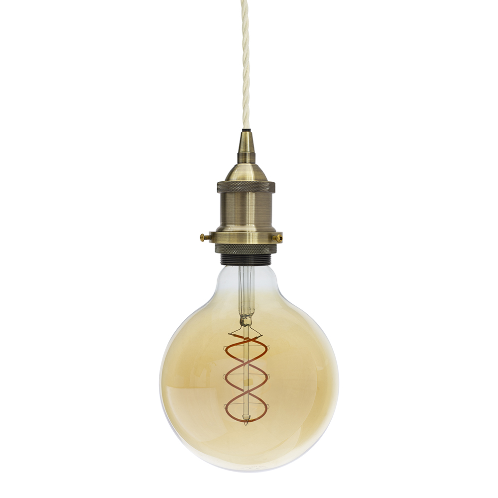 Soho Lighting Antique Brass Decorative Bulb Holder with Cream Twisted Cable