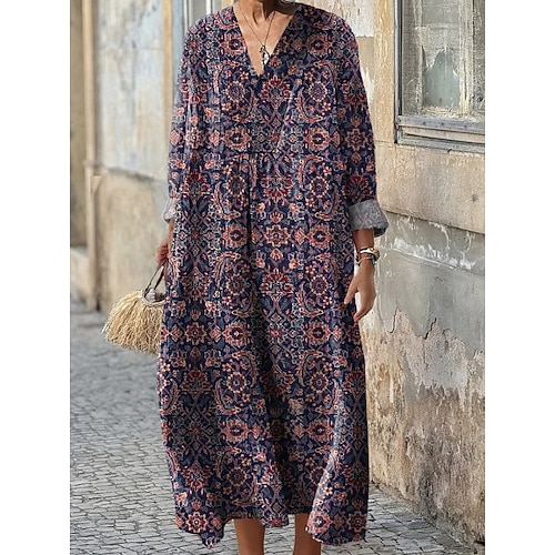 Per donna Abito maxi Vestito Estivo Abito a trapezio Casual Boho Ferie Vestibilità comoda Grafico Geometrico Manica Lunga Scollo a V Rosa Blu Viola Verde Estate Primavera Autunno