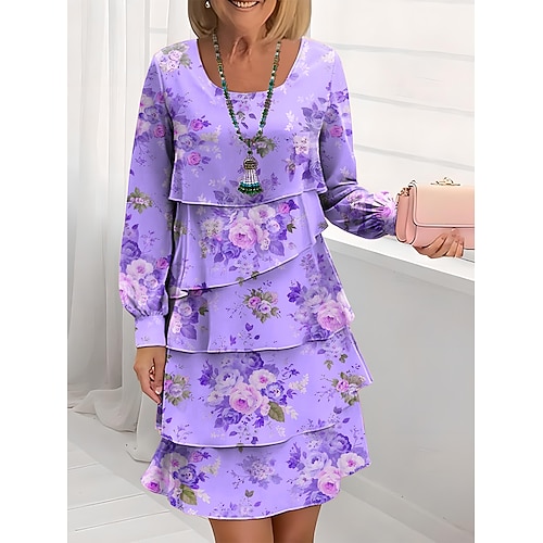 Pasqua Per donna Abito al ginocchio Vestito Casual Vestito in Chiffon Abito a Tubino Abito a strati Elegante Vacanza Casual Vestibilità regolare Floreale Manica Lunga Girocollo Rosa Viola Fucsia Verde