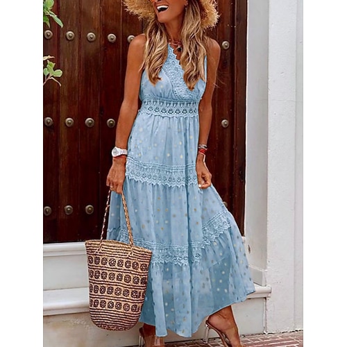 Per donna Abito maxi Vestito Estivo Abito a trapezio Vacanza Casual All'aperto Uscire Vestibilità regolare Tinta unica Senza Maniche Scollo a V Blu chiaro Bianco Giallo Rosa Estate Primavera