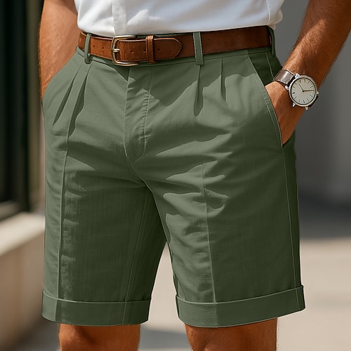 Per uomo Shorts Shorts di Lino Shorts eleganti Pantaloncini Estivi Pantaloncini plissettati Tasca Pieghe Gamba Dritta Semplice Comodità Traspirante Corto Casuale Quotidiano Ferie Moda Designer Nero