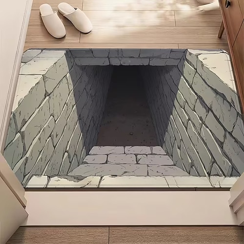 Doormat with 3D Optical Illusion 2D Print Vortex Bottomless Hole Design, Perfect for Indoor and Outdoor Use in Entrance, Living Room, Playroom Office