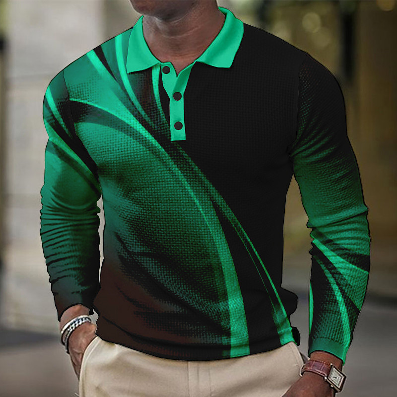 Men's Geometric Polo Shirts Golf Shirt Long Sleeve Polo Shirts Collared Shirts Business Casual WorkWear Formal Wear Festival Wear Buttons 3D Print Fall Winter Blue Green Khaki