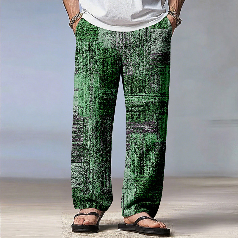 Men's Geometric Color Block Patchwork Pants Trousers Casual Pants Mid Waist Drawstring Elastic Waist Vintage Retro Outdoor Vacation Straight Leg Trousers Spring Fall 3D Print Blue Green