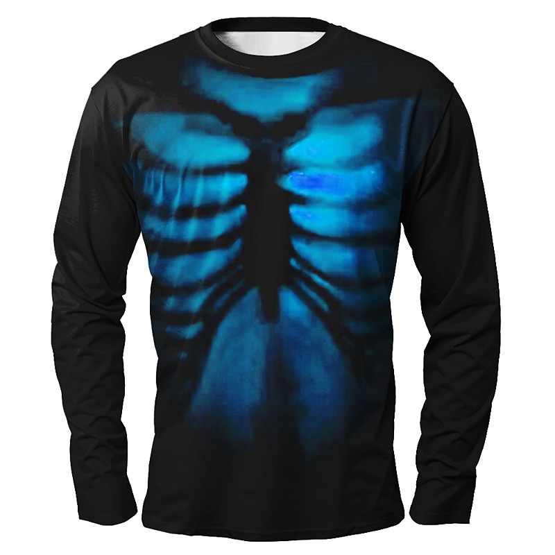 Halloween Men's 3D Flame Skeleton T Shirt Long Sleeve T shirt 3D Print Crew Neck Shirt Fashion Exaggerated Street Casual Daily Red Blue Green Summer Spring Fall Clothing Apparel S M L XL XXL XXXL