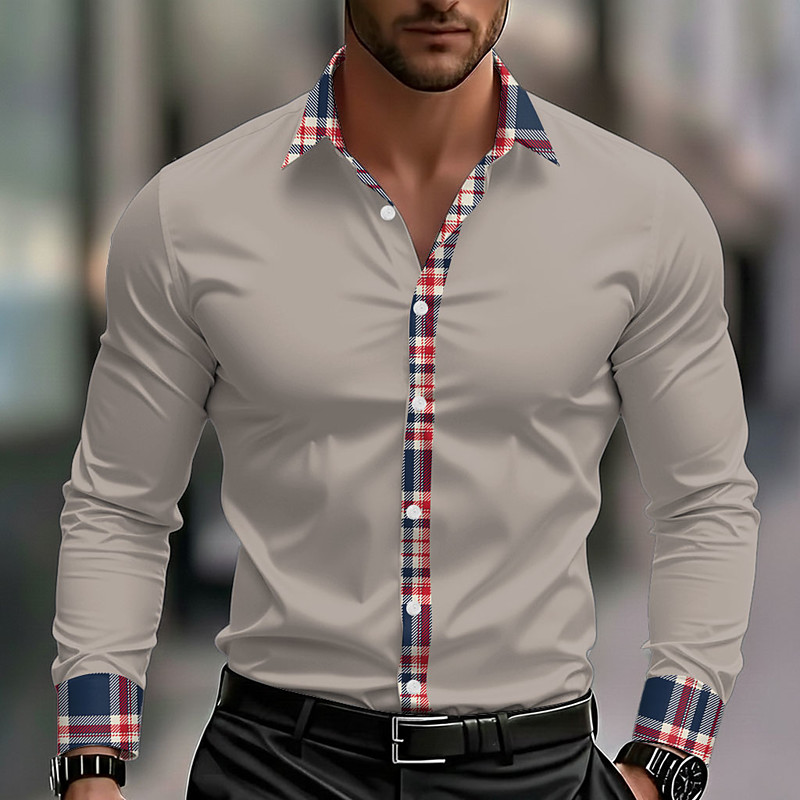 Men's Geometric Grid / Plaid Shirt Button Up Shirt Casual Dress Shirt Long Sleeve Fashion Casual Outdoor Dailywear Spring Fall Turndown 3D Print Collared Shirts Black White Wine Dark Blue Gray