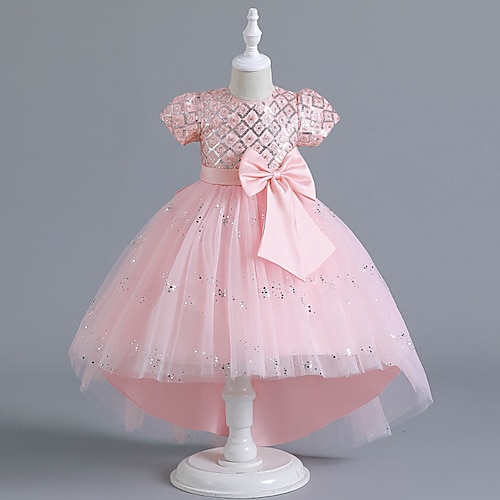 Abito da damigella d'onore bambina Ragazze Abito formale Abiti da sposa Feste Matrimonio Formale Principessa Bello Dolce Paillettes Patchwork Tinta unica Maniche Corte Girocollo Blu Rosa Dai 4 anni