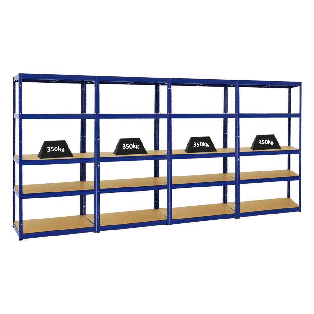 PROREGAL Mega Deal | 4x Schwerlastregal Slim Elephant S | HxBxT 180x90x45 cm | 5 Ebenen | Fachlast 350 kg | Blau | Stecksystem Lagerregal 4 Stk.