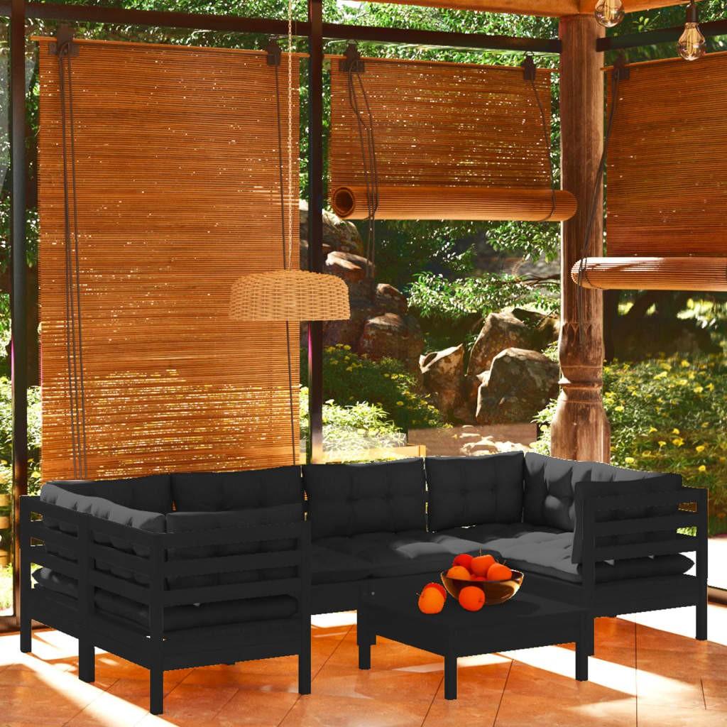 Loungesæt til haven 6 dele massivt fyrretræ sort
