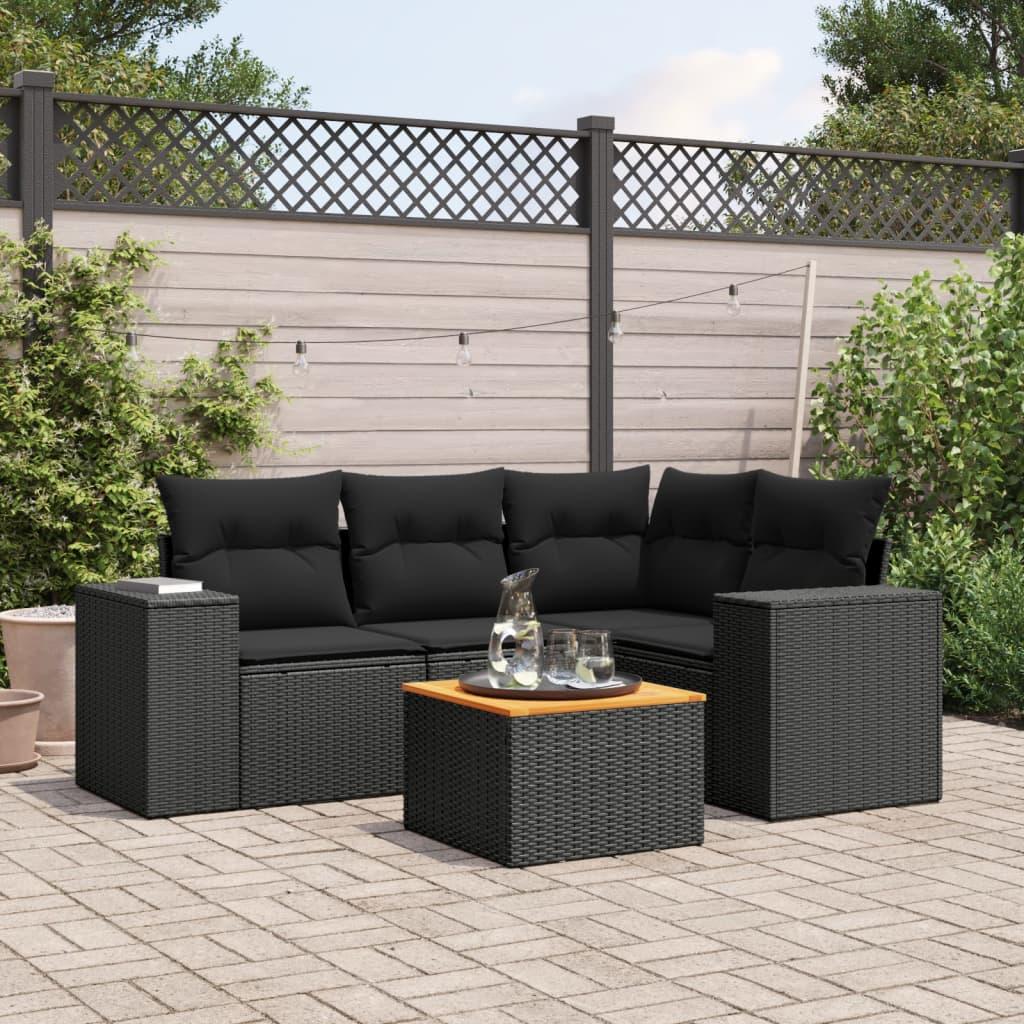 Sofasæt til haven 5 dele med hynder polyrattan sort