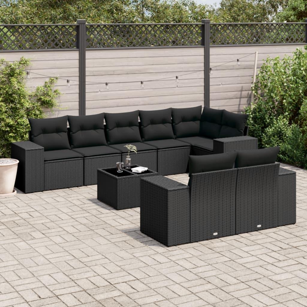 Loungesæt til haven 8 dele med hynder polyrattan sort