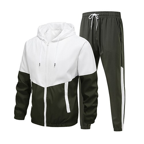 Per uomo Tuta da 2 pezzi Felpa con cappuccio Lounge Set di tute da ginnastica con tasca Blocco di colori Completo Abbigliamento Primavera Nero Verde militare Palestra Allenamento Corsa Vita Alta