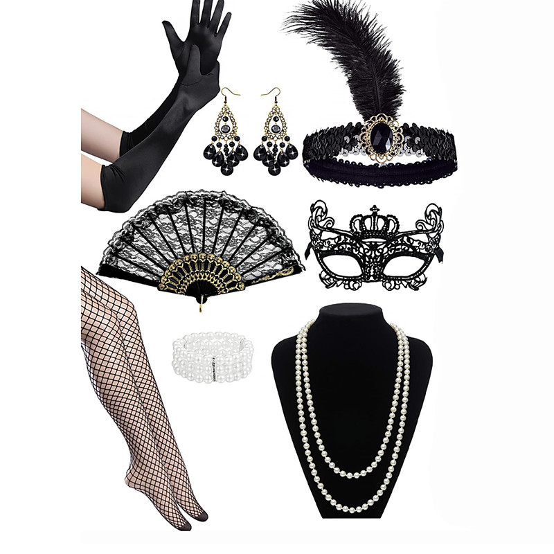 1920s The Great Gatsby Outfits Flapper Headband The Great Gatsby Wedding Guest Collarless Fancy Dress Women's Halloween Carnival Masquerade Party Masquerade Wedding Reception Adults' 1 Fan 1 Bracelet