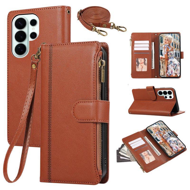 Samsung Galaxy S26 Ultra EIDERWOOD Flip Deksel med Trykk / Kortholder / Stropp - Brun