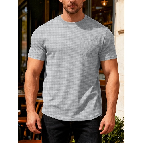 Da uomo Maglietta a Maglia Waffle Maglietta Manica Corta Girocollo Il giro Estate Tinta unica Testurizzato Moda Designer Casual Tasca Casuale Quotidiano All'aperto Blu chiaro Nero Bianco Maglietta