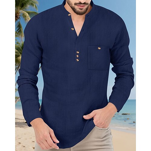 Per uomo Camicia Camicia di lino Camicia Estiva Camicia da Spiaggia Camicia con Bottoni Camicia con cappuccio Semplice Vacanza Abbigliamento quotidiano Nero Bianco Azzurro cielo Cachi Manica Lunga