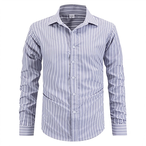 Per uomo Camicia Camicia elegante Camicia con Bottoni A righe Matrimonio Quotidiano Blu Azzurro cielo Verde Kaki Manica Lunga Collo ripiegato Primavera Autunno Abbigliamento Bottoni