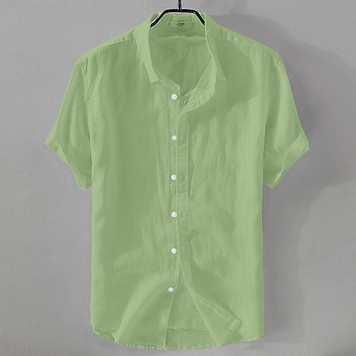 Herren Hemd Leinenhemd Freizeithemd Baumwollhemd Einfach Urlaub Straße Schwarz Weiß Rosa Blau Kurzarm Umlegekragen Sommer Bekleidung Button-Down
