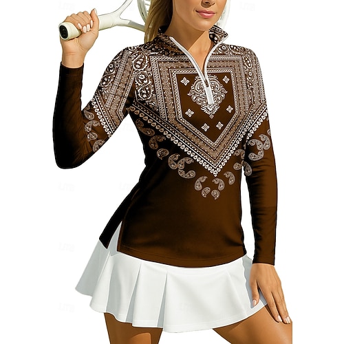 Per donna Geometrico Maglietta sportiva Polo da golf Maglia da tennis Maglietta da tennis Manica Lunga Cerniera Floreale UPF50 Resistente ai Raggi UV Alta elasticità Traspirante Tennis Golf