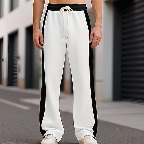 Herren Jogginghose Hose Gerade geschnittene Sweatpants Kordelzug Tasche Elastischer Bund Farbblock Komfort Sport im Freien Täglich Mode Lässig Schwarz Weiß Mikroelastisch