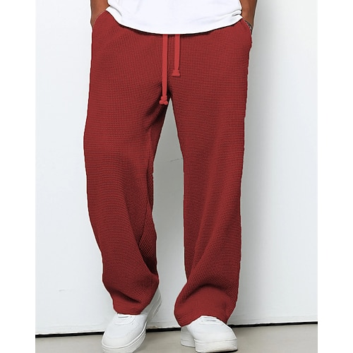 Herren Jogginghose Hose Gerade geschnittene Sweatpants Waffelhose Kordelzug Tasche Elastischer Bund Einfach Komfort Sport im Freien Täglich Mode Lässig Gelb Rosa Mikroelastisch