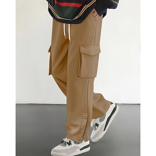 Herren Cargo-Jogginghose Jogginghose Hose Kordelzug Tasche Elastischer Bund Einfach Komfort Sport im Freien Täglich Mode Lässig Schwarz Rote Mikroelastisch
