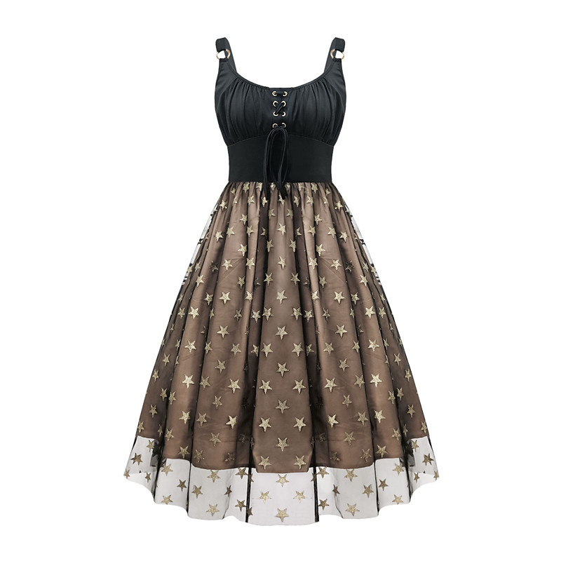 Retro Vintage Gothic Midi Dress Fit and Flare Fancy Dress Women's Halloween Carnival Party Casual Adults Dress Spring Summer