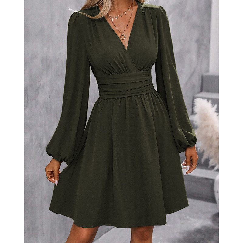 Women's Mini Dress Casual Dress Ruched Dress Modern Daily Going out Weekend Regular Fit Plain Long Sleeve V Neck Black Wine Army Green Navy Blue Spring Fall