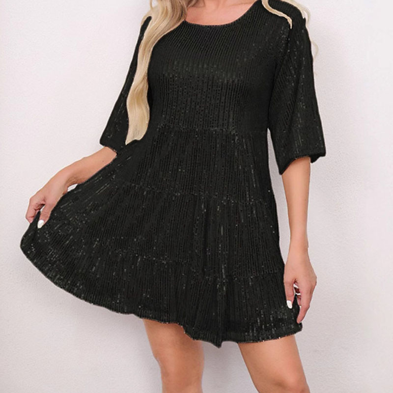 Women's Mini Dress White Dress Black Dress Sequin Dress Pink Dress Elegant Fashion Classic Daily Outdoor Party Loose Fit Plain Short Sleeve Crew Neck Silver Light Pink Black Champagne Summer Spring