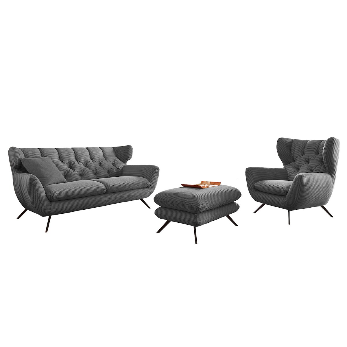 KAWOLA Sitzgruppe CHARME 2-Sitzer Sessel Hockerbank Cord grau