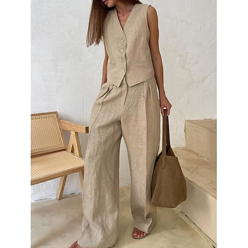 Per donna Set di biancheria in cotone Set di Pantaloni Bolero Top Senza Maniche Scollo a V Semplice Elegante Moda Streetwear Casuale Quotidiano All'aperto Nero Arancione Cachi Estate Vestibilit