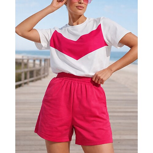 Per donna Tuta da Ginnastica Felpa pullover Pantaloncini da pista Coulisse 2 Pezzi Blocco di colori Set di Abbigliamento Sportivo Estate Primavera Nero Rosa Allenamento in Palestra Jogging Corsa