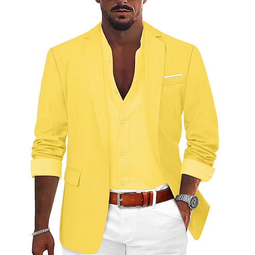 Per uomo Giacca sportiva Blazer di lino Di tendenza Informale Tinta unita Blazer in lino Verde militare Nero Blu Taglio sartoriale Monopetto - 1 bottone