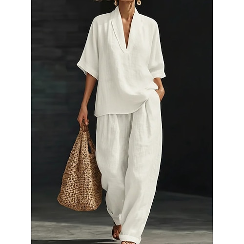 Per donna Set di biancheria in cotone Mezza Manica Scollo a V Semplice Vacanza Quotidiano Casuale Quotidiano Blu Nero Bianco Primavera Estate
