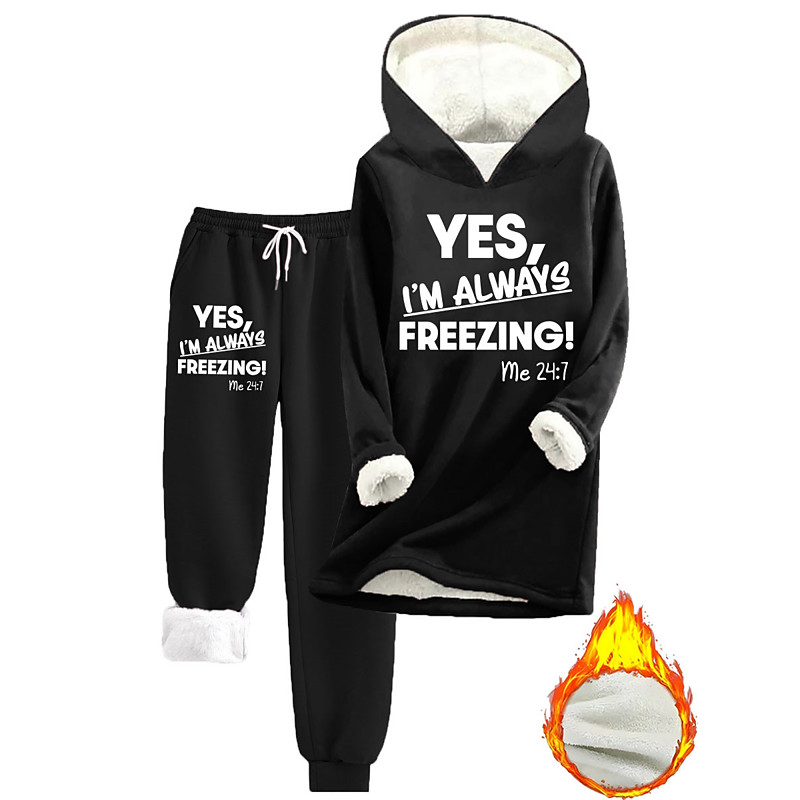 Women's 2 Pieces Loungewear Set Hoodie Tracksuits and Joggers Casual Cold Weather Phrase Print with Fleece Lining Cozy Fit Winter