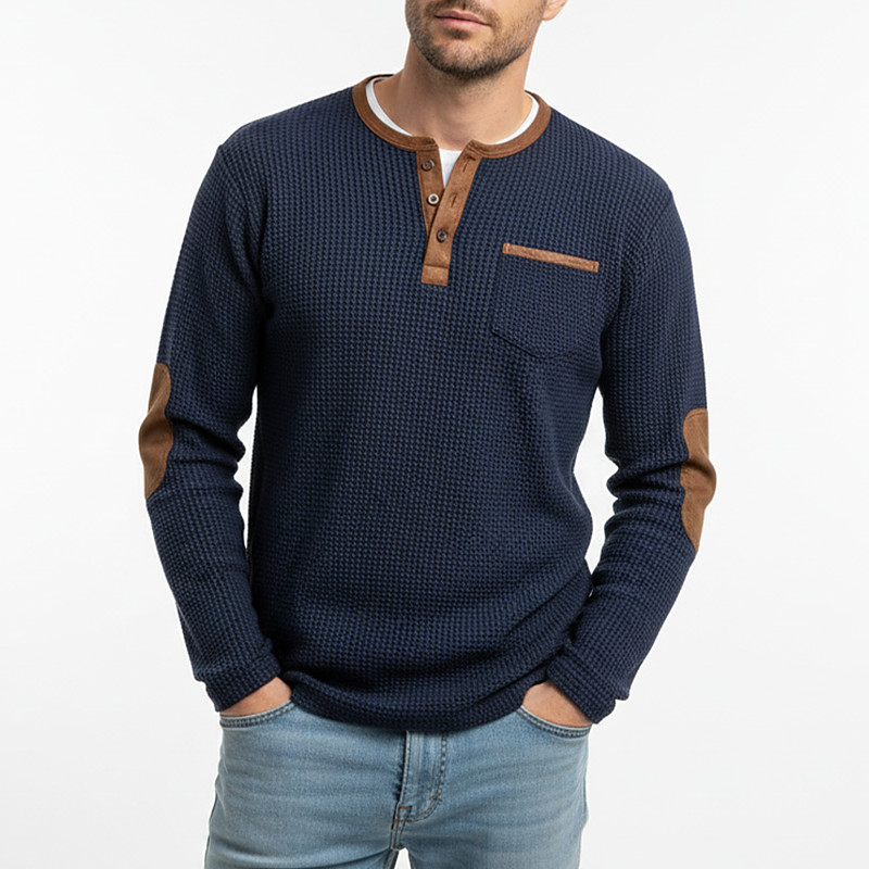 Men's Waffle Tee Waffle Henley Shirt Shirts With Elbow Patches Long Sleeve V Neck Henley Spring Fall Fall Winter Solid Color Fashion Basic Casual Fake two piece Casual Street Sports Black White