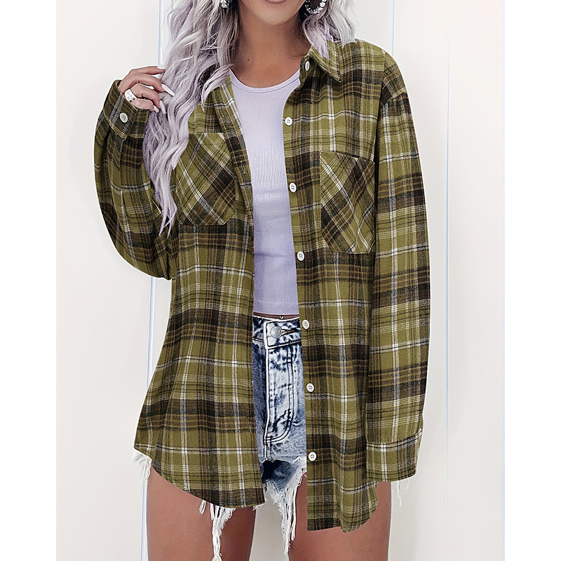 Women's Shirt Plaid Elegant Bohemia Vintage Long Sleeve Shirt Collar Regular Tops Daily Holiday Going out Pocket Buttons Purple Green Spring Fall