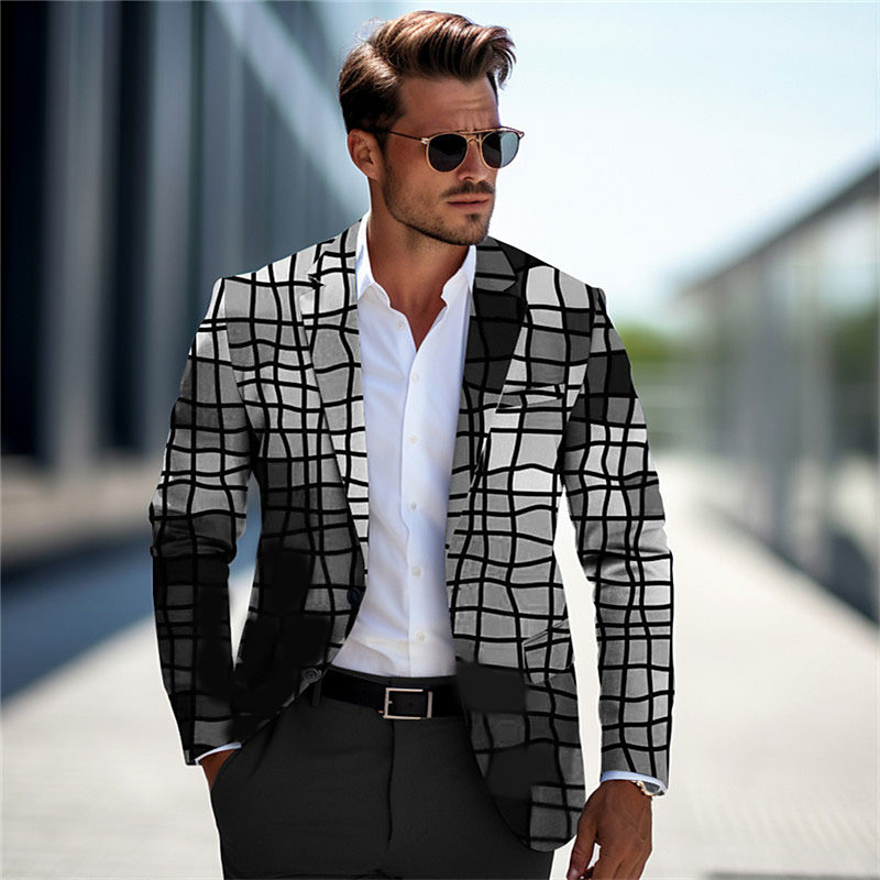 Men Lightweight Jacket Summer Jacket Casual Outdoor Single Breasted Summer Spring POLY Plaid Check Pattern Fashion Single Breasted Blazer WhiteA WhiteB Yellow