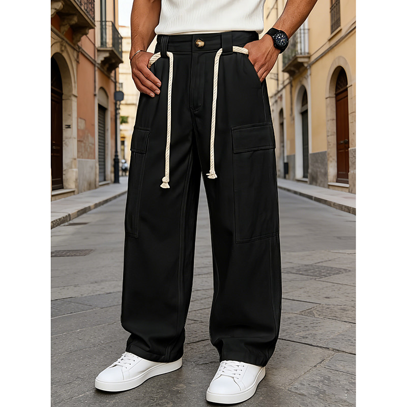 Men's Cargo Pants Trousers Baggy Pants Drawstring Multi Pocket Flap Pocket Plain Windproof Comfort Daily Outdoor Holiday Vacation Streetwear Black White Inelastic