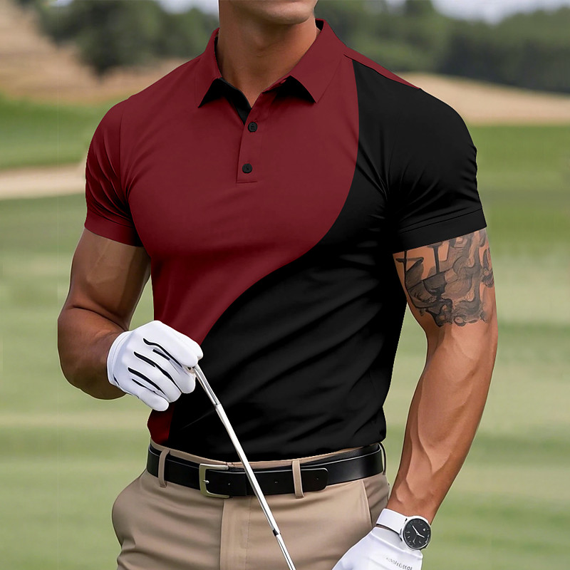 Men's Golf Line Polo Sports Polo Shirts Short Sleeve Polo Shirts Collared Shirts Casual Athleisure Buttons Summer Blue Red Green
