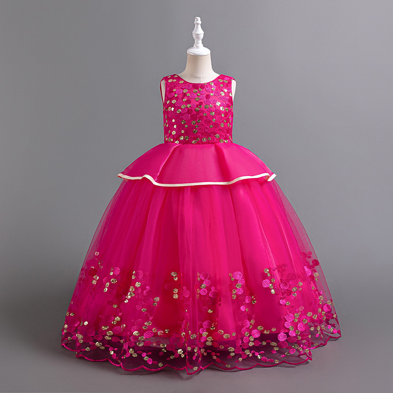 Flower Girl Dress Girls' Formal Dress Wedding Attire Prom Party Wedding Elegant Fashion Adorable Sequins Patchwork Floral Sleeveless Crew Neck Blue Wine Red 4 years