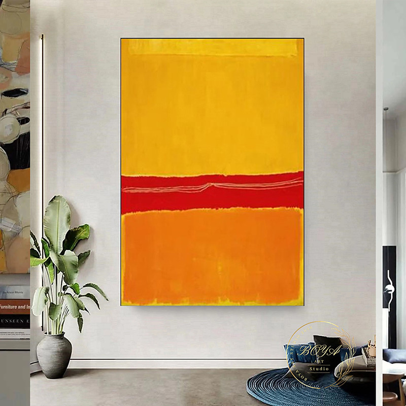 handgemalte Leinwandkunst von Mark Rothko, Reproduktion, Rothko-Wandkunst, abstrakte Leinwand-Wandkunst, rote und gelbe Mischung, abstrakte Malerei, Minimalismus-Kunst, Gemälde, Heimdekoration,