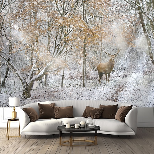 grande arazzo da parete con cervo, animale, paesaggio autunnale, fotografia, sfondo, coperta, tenda per la decorazione della casa, camera da letto, soggiorno