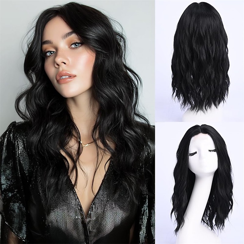 Brown Highlight Short Wavy Wig for Women Lace Hairline Bob Style Synthetic Heat Resistant - Natural Appearance for Everyday Hairstyle 14 Inch