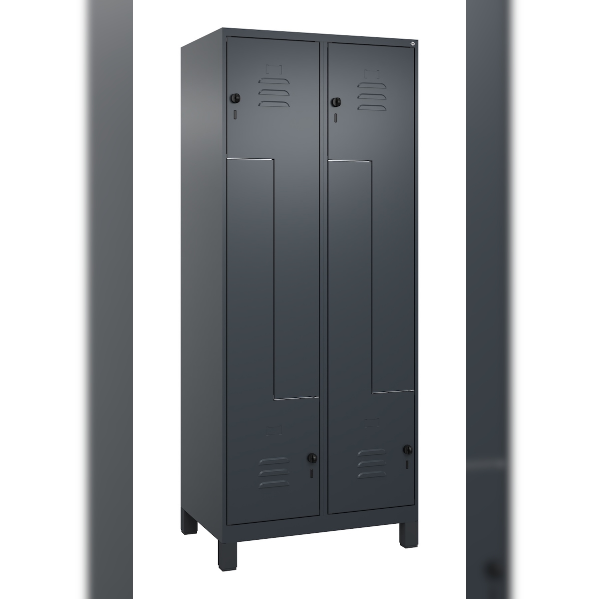 C+P Spind Classic PLUS, Füßen, 2 Abteile, HxBxT 195x50x50cm, Zylinderschloss, Anthrazit von PROREGAL