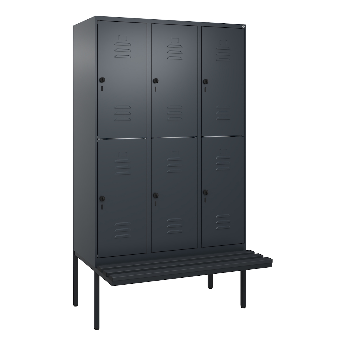 C+P Spind Classic PLUS, Kunststoff schwebende Sitzbank, 6 Abteile, HxBxT 212x120x82cm, Sicherheitsdrehriegel, Anthrazit von PROREGAL