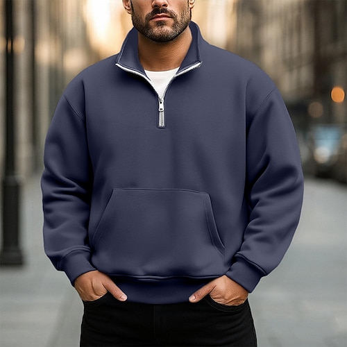 Per uomo Maglia Felpa con zip corta Nero Bianco Verde militare Blu marino Cammello Mezza zip Semplice Quotidiano Sport Outdoor Ferie Cotone Streetwear Essenziale Casual Primavera Autunno